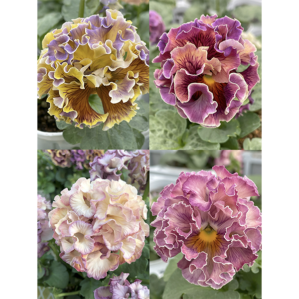 From renowned breeder Isao Sato of Japan, who spent decades dedicated to perfecting the art of breeding, channeling his expertise and vision into creating truly distinctive pansy varieties. The result is the exquisite Antoinette Collection. These extraordinary pansies are known for their lavishly ruffled blooms, displaying an enchanting palette of pastel colors that range from soft whites and delicate pinks to sunny yellows and gentle purples. Photo courtesy of Tagawa. Click here for a colorful poster of all three varieties!
